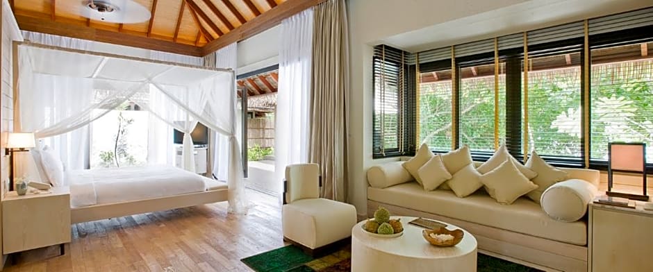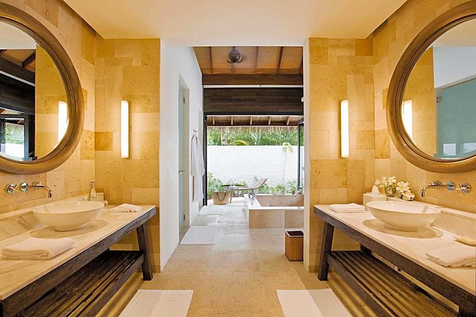 Each of these spacious villas has a private pool, sun deck and full-length windows overlooking the Indian Ocean. The bedroom has a separate dressing area and the bathroom features a sunken bath and outdoor shower.